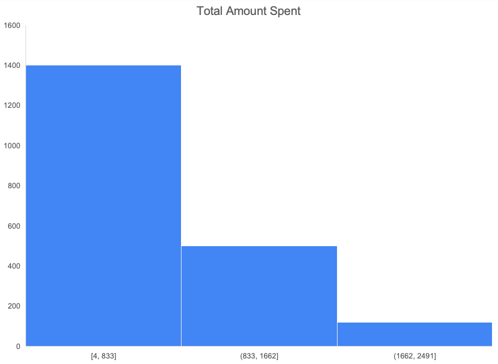 - A larger number of customers spent no more than $800.